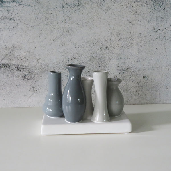 ●高さの違うベースが集まって、一輪挿しでも花束をバラして飾っても使い方いろいろ。