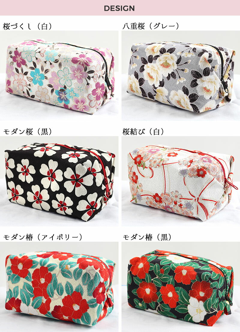 京都の有名工房で制作した【和KOMONO】シリーズ特大風船ポーチちりめん和装小物宇仁繊維社オリジナル「和KOMONO」<仕様>縦:約10cm 横:約17cm 幅:約9cm<素材>表地:ポリエステル100%(二越ちりめんR)<生産国>日本<バリエーション>桜づくし(白)八重桜(グレー)モダン桜(黒)桜結び(白)モダン椿(アイボリー)モダン椿(紺)色七宝(ピンク) 注意事項 ●お買い物方法や商品・送料などについてのお問い合わせは当店のカスタマースタッフまでご連絡ください。
