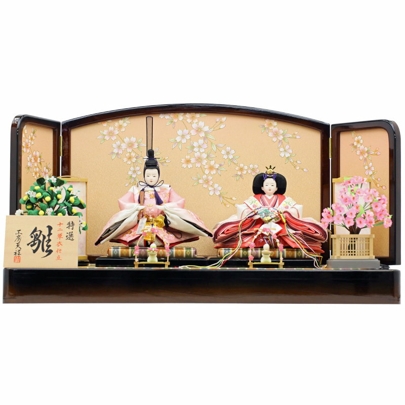 雛人形 ひな人形 おしゃれ 人形工房天祥オリジナル 限定 ひな人形 親王飾り 衣装着ひな人形 束帯十二単 親王飾り 雛(桜刺繍) さくら台屏風セット