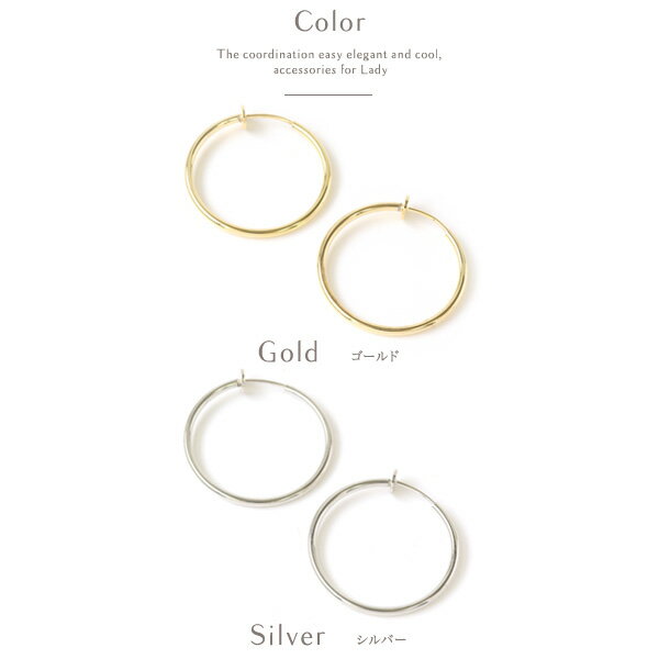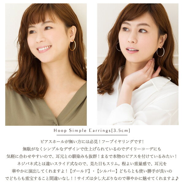 【ネコポス送料無料】 イヤリング 金属アレルギー対応 フープ シンプル 3.5cm レディース ゴールド シルバー フープイヤリング ピアスみたい 女性 ニッケルフリー ノンホールピアス フープピアス フェイクピアス 結婚式 上品 jewelvox