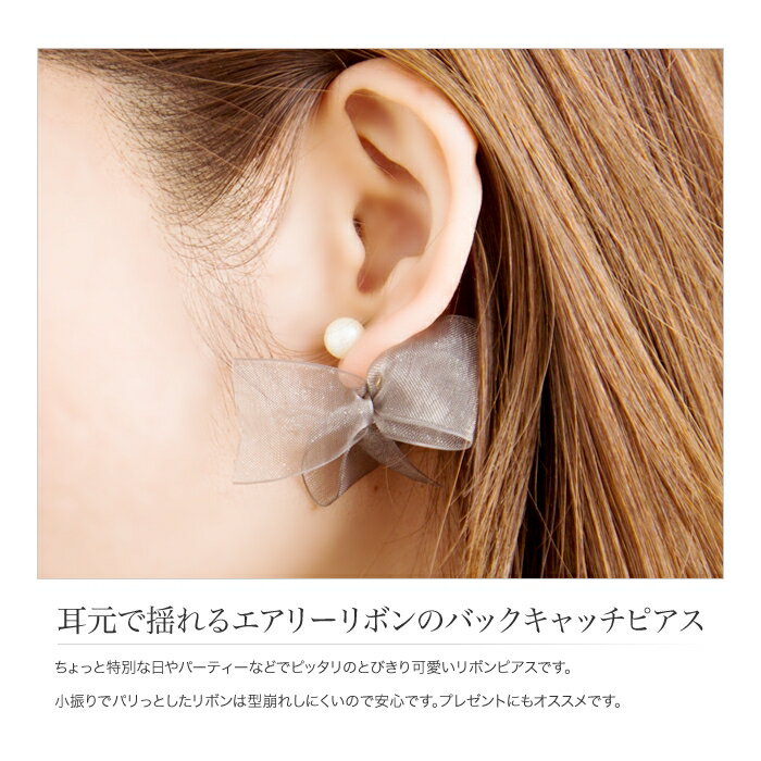 【ゆうパケットOK】『耳元で揺れるエアリーリボンのバックキャッチピアス♪
