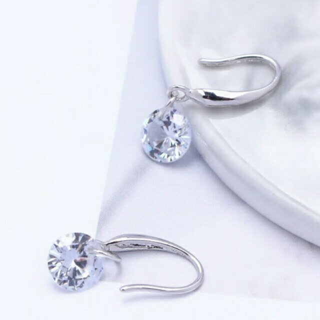 揺れるピアス シルバー ピアス レディース 一粒 キュービックジルコニア ドロップピアス フックタイプ 結婚式 パーティ キラキラ 全2色 eb2